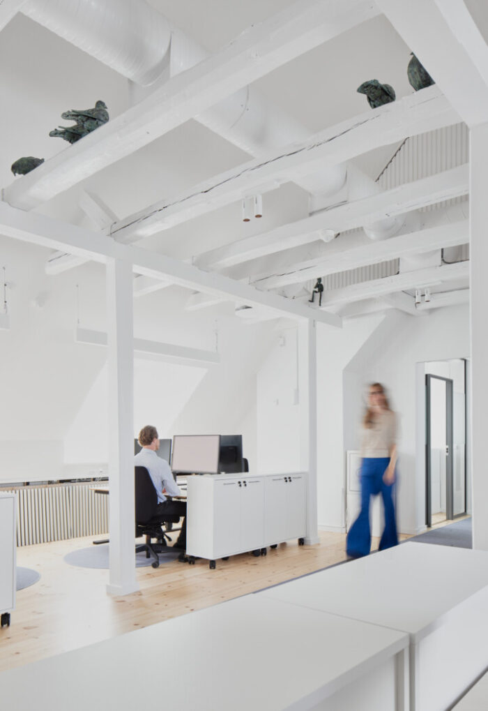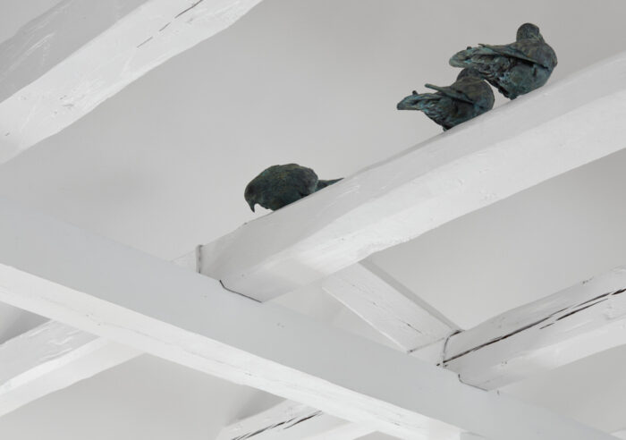 ![]() Umage har i sin rolle som Statens Kunstfonds konsulent for udsmykning af statsligt byggeri rådgivet BYGST i forhold til udsmykning af udvidelsen af Justistsministeriet på Slotsholmen i København. Kunstværket “Loftet” af Lars Worm blev realiseret 2024. Loftet er traditionelt set et rum, der er til overs, et ikkested. Et rum for det gemte og glemte. Loftet kan være utæt, og byens usynlige liv: dyr, fugle og væsner flytter ind. Ni duer og en Loftsånd sidder spredt ud på svanebåndene. De boede her først og holder nu øje med stedets nye beboere. Duerne som repræsentanter for det velkendte København, torvene, pladserne og tagene. Loftsånden rummer det irrationelle, alternative og de glemte historier. Den er skabt af det den selv finder; grene, kogler og en cigar. Den rækker lokkende og drillende en mønt frem mod de passerende under den. Alle ti i bronze, som forbinder dem med byens tage, skulpturer og monumenter, der indrammer en fælles historie, der peger både frem og tilbage i tiden. ![]() ![]() ![]() |