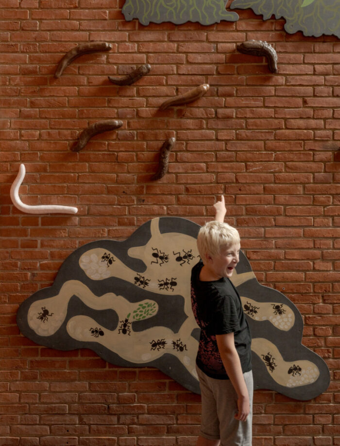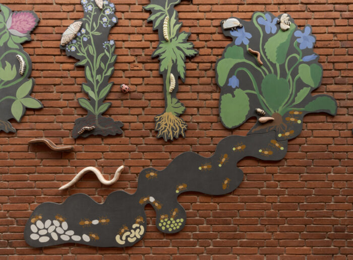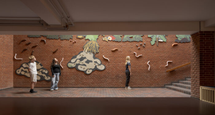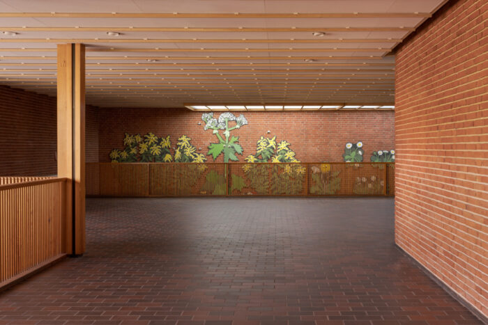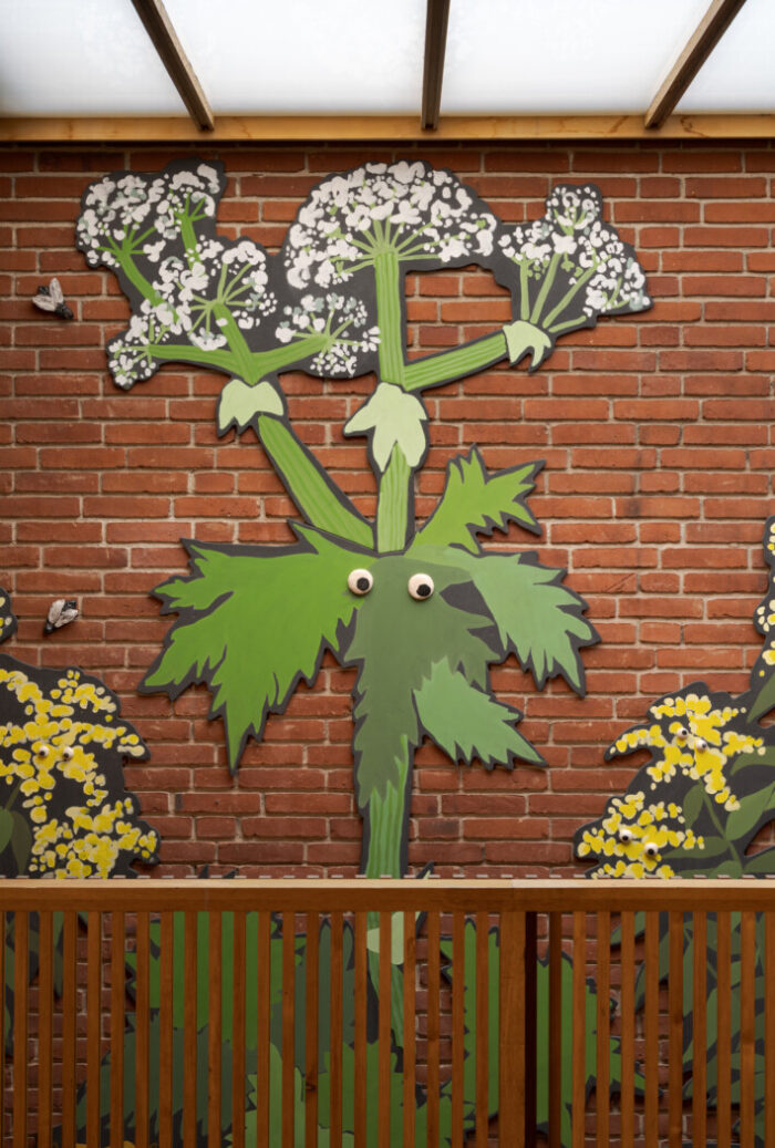 Umage har den store fornøjelse at indvie Emilia Bergmarks udsmykning DET VOKSER VILDT! d. 19. september 2025. ![]() Værket er en 22 meter lang vægfrise skabt til kulturhuset Mørkhøj Park i Gladsaxe Kommune. Vægfrisen i valchromat og keramik spejler naturen omkring Mørkhøj Park og dens udvikling fra blomstrende engareal til græsplæner med robuste invasive plantearter. Værket tilbyder over flere etager at gå på opdagelse i det liv, som udspiller sig over og under jorden blandt blomster og insekter. ![]() Bygningskomplekset Mørkhøj Park er en horisontal lav arkitektur, der følger landskabet. Kunstværket DET VOKSER VILDT! tager fat i bygningens horisontlinje og leger med, hvad der sker over og under jorden. Fra entréen og foyeren ser vi blomster og insekter, der lever over jorden, men når vi går ind og ned ad trappen, forlader vi jordoverfladen og træder ned i det underjordiske. Bygningskomplekset Mørkhøj Park er en horisontal lav arkitektur, der følger landskabet. Kunstværket DET VOKSER VILDT! tager fat i bygningens horisontlinje og leger med, hvad der sker over og under jorden. Fra entréen og foyeren ser vi blomster og insekter, der lever over jorden, men når vi går ind og ned ad trappen, forlader vi jordoverfladen og træder ned i det underjordiske. ![]() Eleverne fra Enghavegård Skole har været med til at skabe kunstværkets figurer og fortællinger. Inspireret af blomster og insekter i Mørkhøj Park skabte de fantasifulde ’blomsterhelte’ og ’blomstermonstre’. Eleverne viste stor fascination for kæmpebjørnekløens enorme, giftige, smukke og monstrøse udtryk, og derfor valgte kunstneren den som blikfang i kunstværket. ![]() ![]() ![]() |
